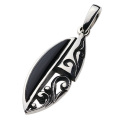 リーフ(葉)のようなシルエットにオニキスと唐草を組み合わせたシルバーペンダントです。