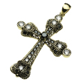 cenote p7006 【ブラスアクセサリー】 真鍮クラウンクロスペンダント ホワイトジルコニア ブラックジルコニア