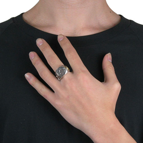 HOME指輪・リング シルバーアクセサリー cenote r0385 【シルバーアクセサリー】 守護梵字 不動明王リング 価格: ¥12,900 (税込) [ポイント還元 1,290ポイント~] 販売期間: レビュー特典: 選択してください 投稿しない(特典なし) 投稿します(シルバー磨き同封) 数量: 個 サイズ在庫購入15号○ 17号○ 19号○ 21号× 23号× 25号× 27号× 29号× サイズ在庫購入15号○ 17号○ 19号○ 21号× 23号× 25号× 27号× 29号× 返品についての詳細はこちら レビューはありません 酉年(とり)の守護梵字である不動明王(カーン)を彫り込んだシルバーリングです。 不動明王が右手に持つ剣と十三仏真言を唱える際に結ぶ印相を真鍮でデザインしています。 この梵字は厄除け・開運吉祥の功徳があり持つだけでお守りになると言われています。 素材:スターリングシルバー925 真鍮 サイズ[幅:16mm 厚さ:5mm 重さ:15g] ※サイズには多少の個体差があります。 ■オススメアクセサリー■ cenote p0358 【シルバーアクセサリー】 三日月兎ペンダント ¥4,790(税込) cenote p0656 【シルバーアクセサリー】 バリねこガムランボールペンダント ¥15,000(税込) cenote e0568p 【シルバーアクセサリー】 結び目玉ウサギピアス ピンク ¥7,800(税込) cenote e2050 【シルバーアクセサリー】 ジッパーシルバーイヤーカフ ¥4,800(税込) cenote r0436 【シルバーアクセサリー】 かえる顔リング ホワイトジルコニア ¥6,300(税込) cenote r0375 【シルバーアクセサリー】 アラベスクツインリング ¥7,800(税込) cenote r0292 【シルバーアクセサリー】 ダブル唐草リング ホワイトジルコニア ¥11,000(税込) cenote s0033 【シルバーアクセサリー】 メキシカンマリアオイルライター ¥80,900(税込) cenote s0050 【シルバーアクセサリー】 アラベスクペーパーナイフ ¥22,000(税込) cenote s0048 【シルバーアクセサリー】 ボーンハンド純銀灰皿 ¥130,000(税込)