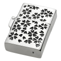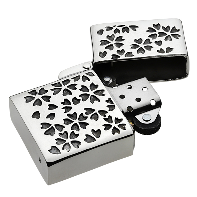 片面のみに桜の花びらを刻み込んだ和柄の純銀製のオイルライターです。