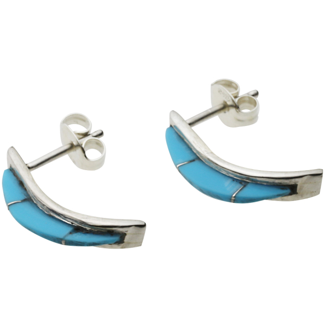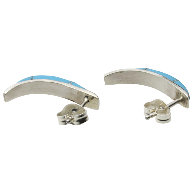 一つ一つ丁寧にターコイズを削り、はめ込んだ半フープ形状のアイテムです。